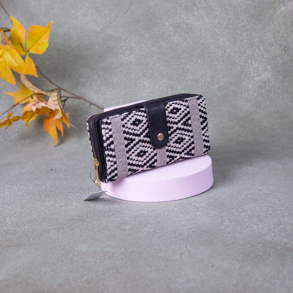 Beautifully weaved boho fabric wallets made with vegan leather for daily use