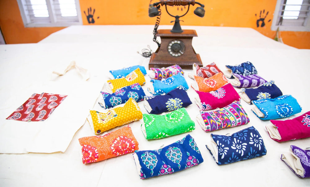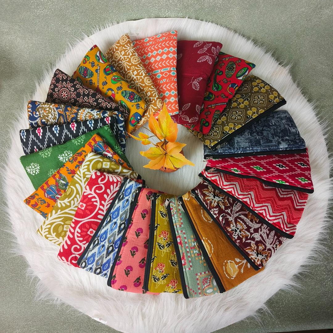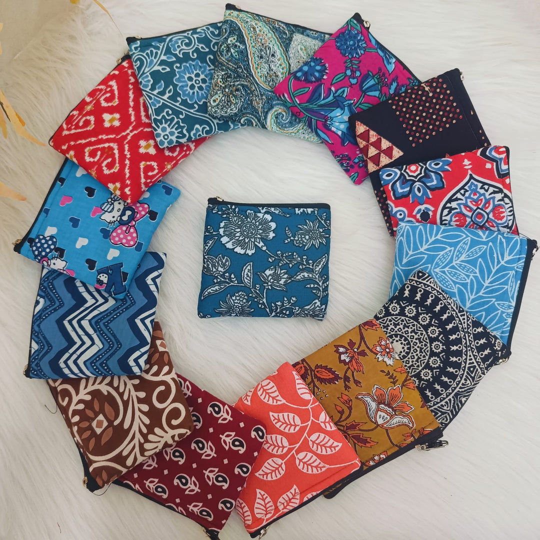 Vanity Pouch Mustered Colour with Red Colour Flower Design.
