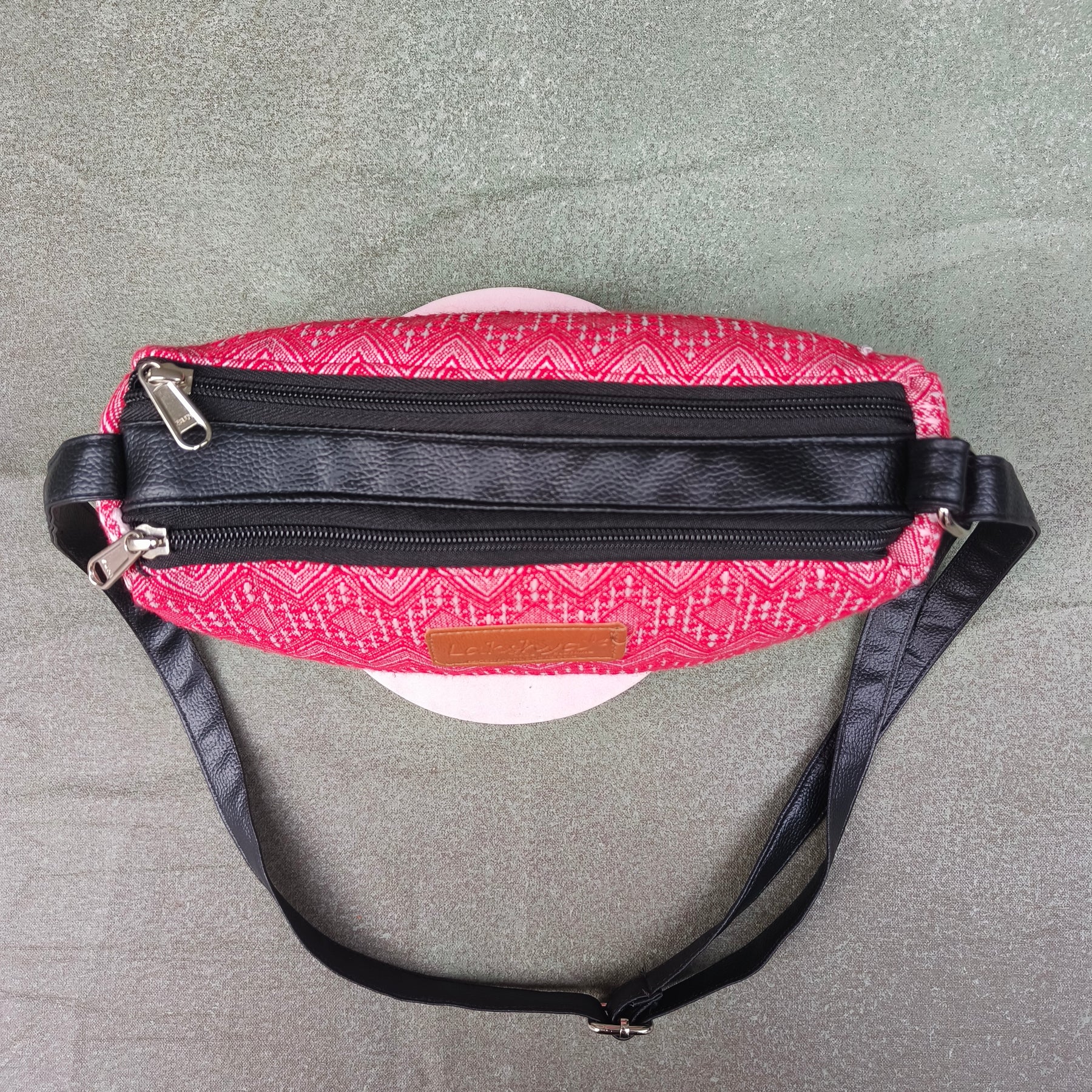 With two main zip compartments and Crafted in premium leather with adjustable strap.