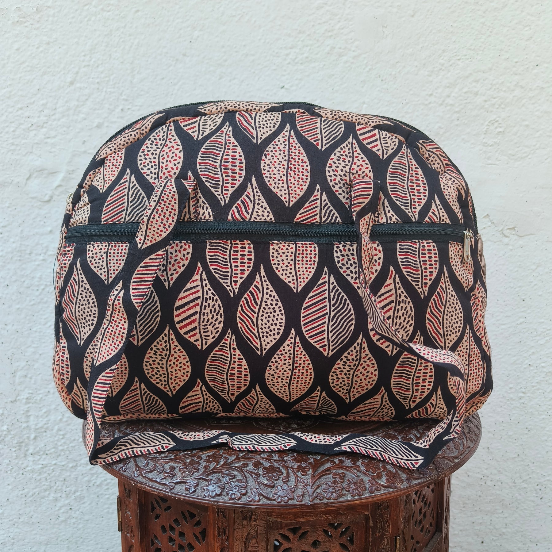 Everyday Tote black with big leaf print