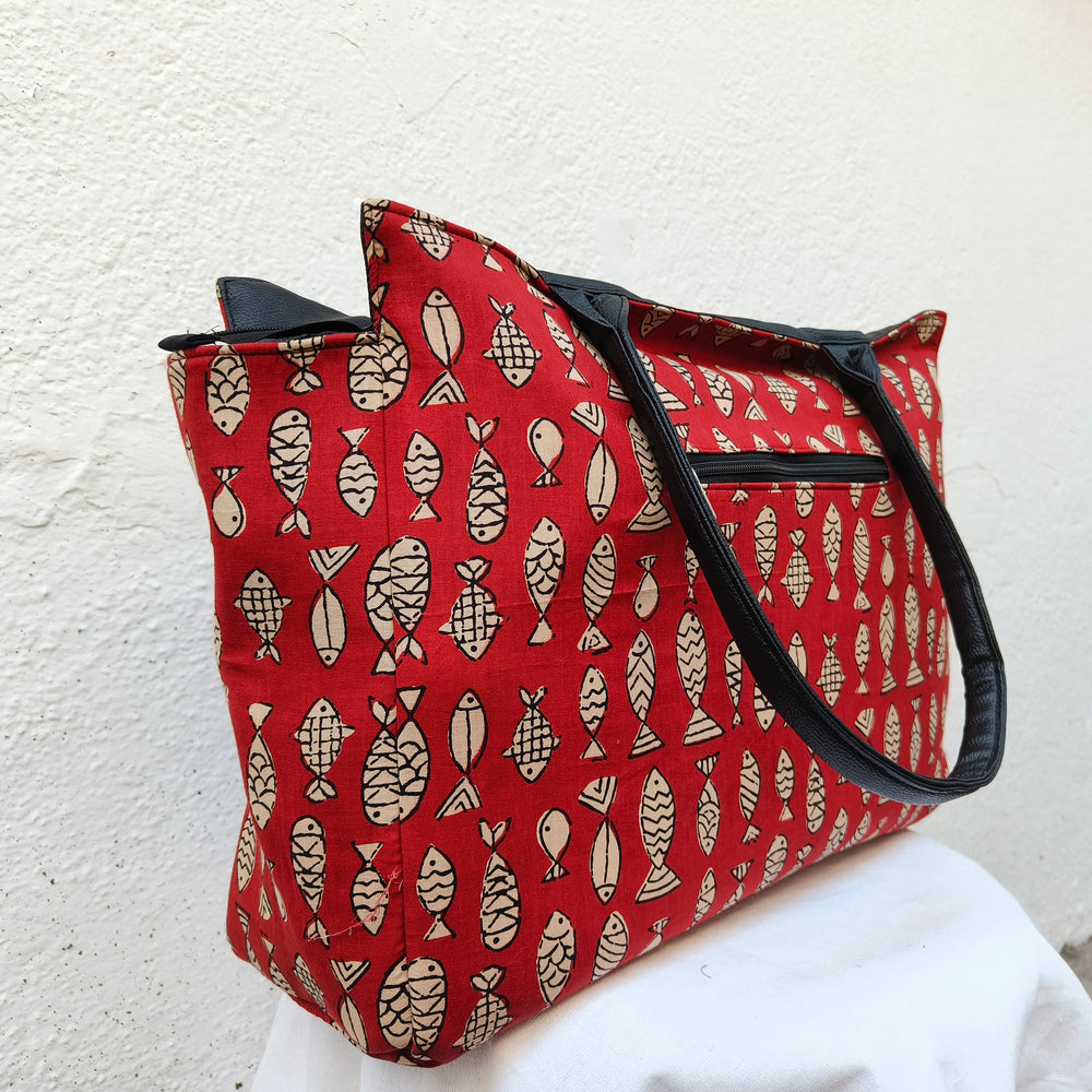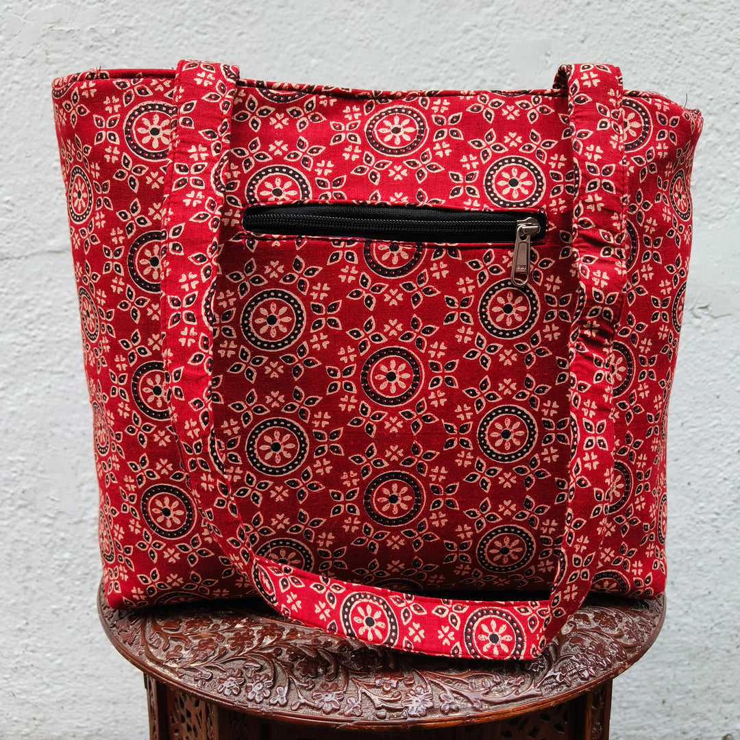 9Am to 5Pm tote red with jaipur print