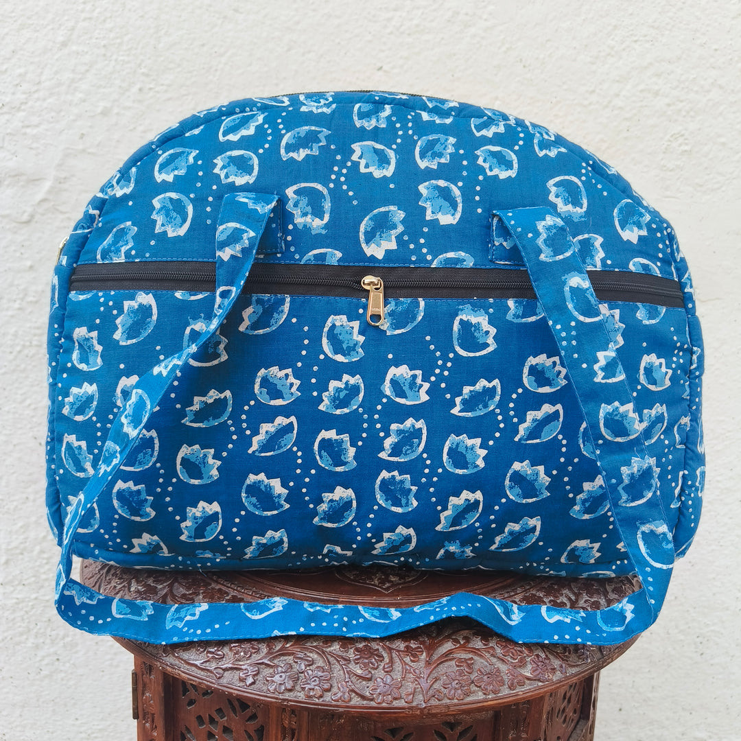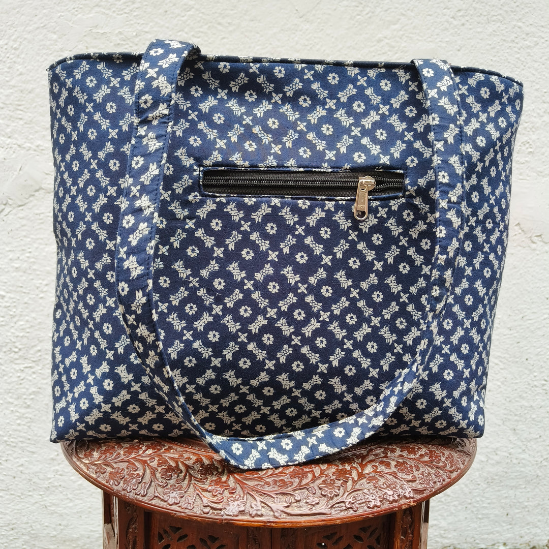 9Am to 5Pm tote blue with flower print