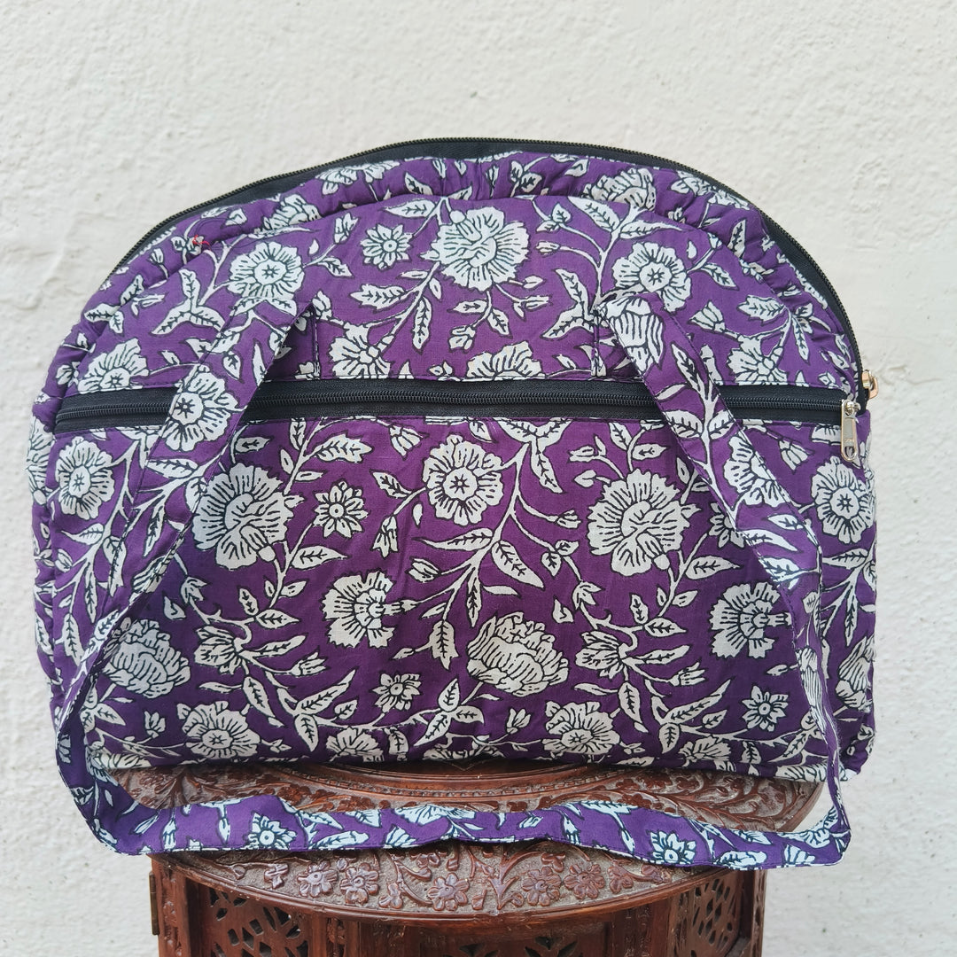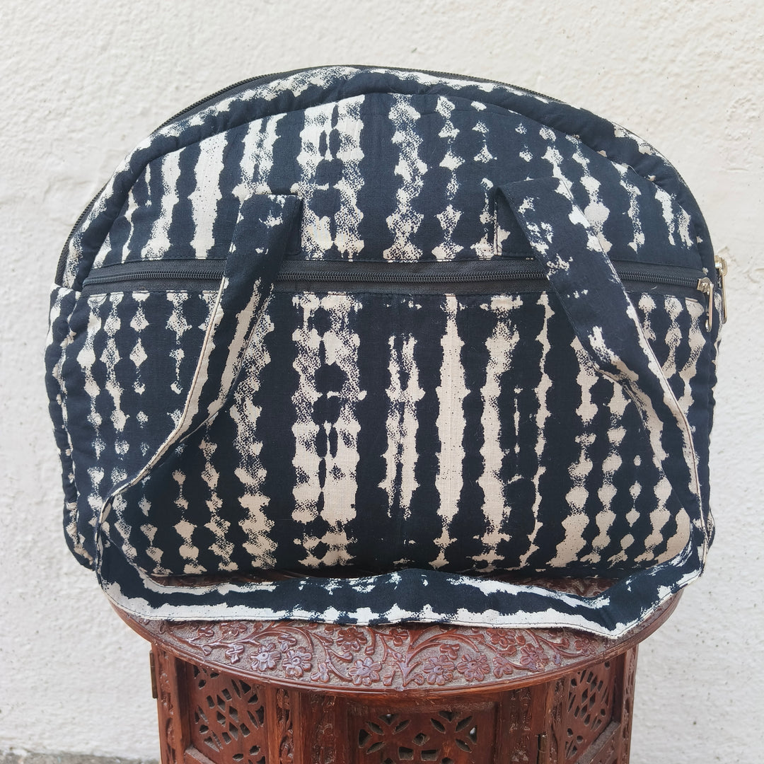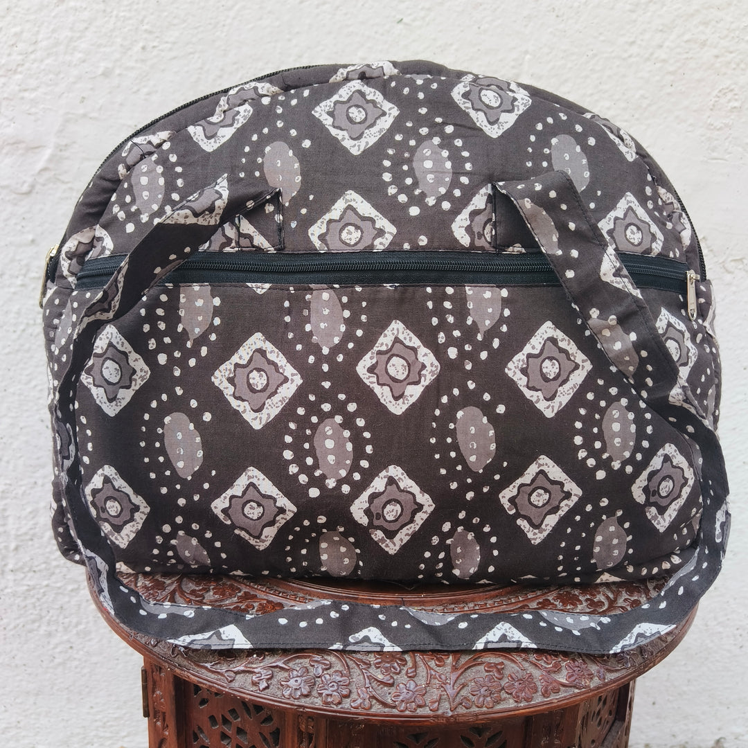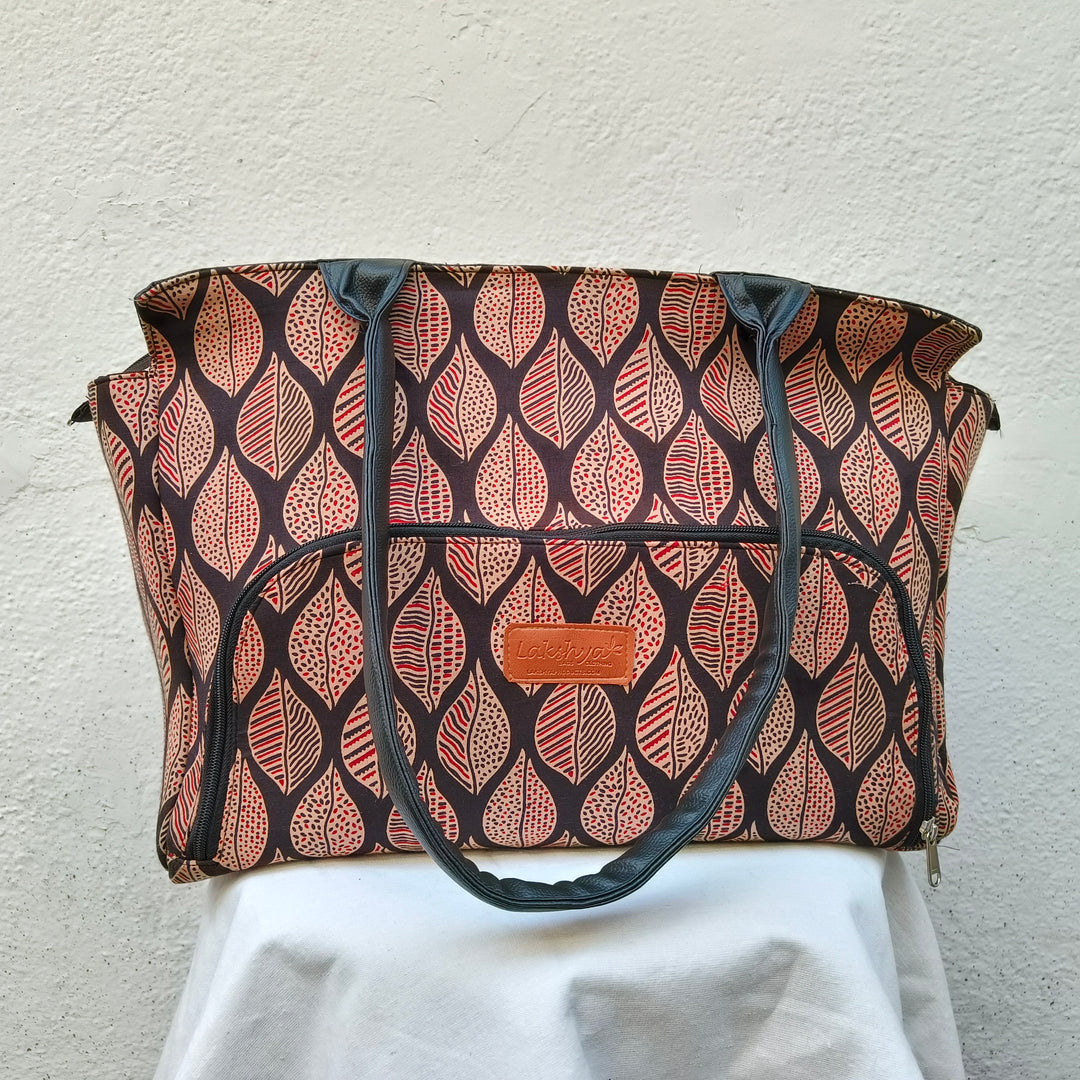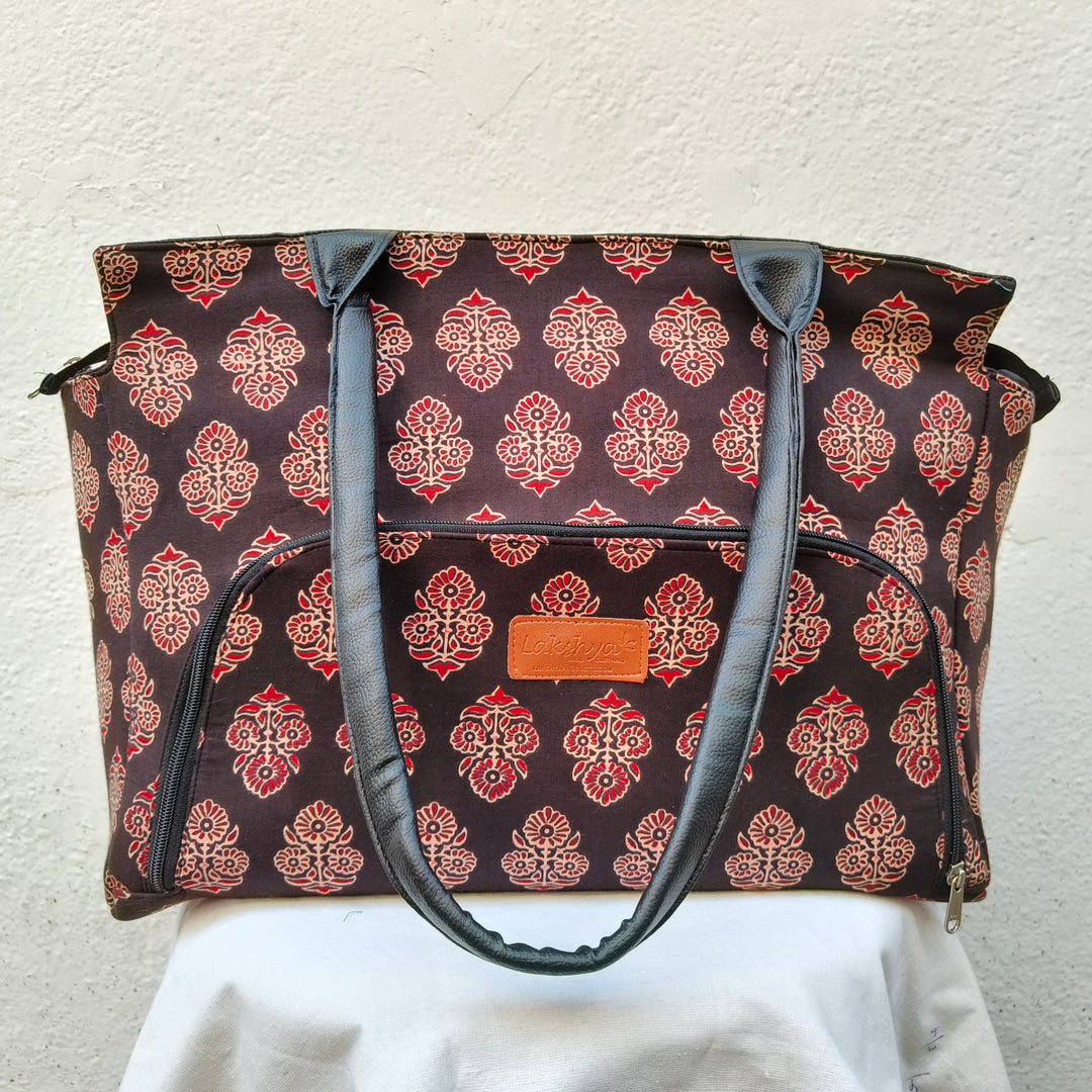 Versatile partition tote black with hand block print