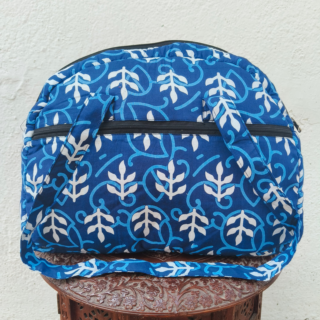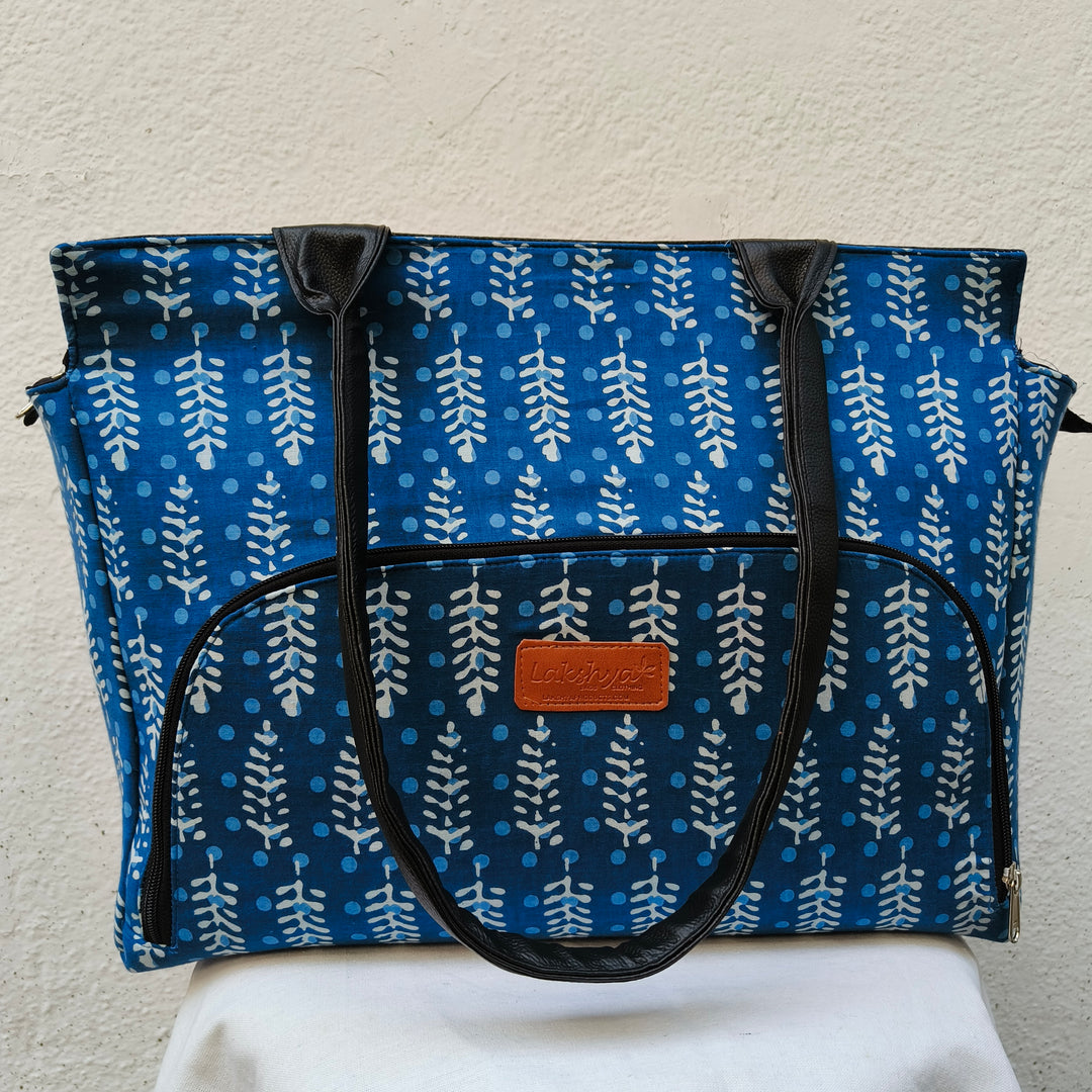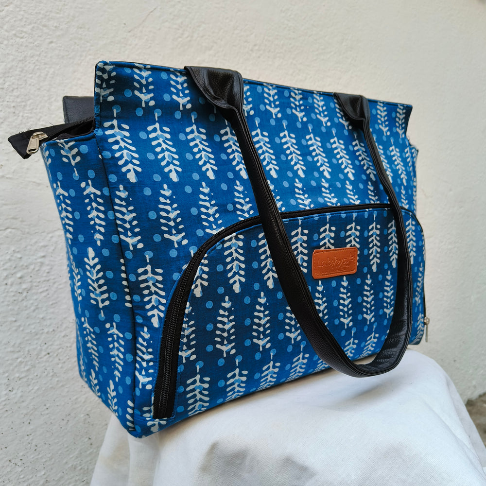 Versatile partition tote Blue with leaf print