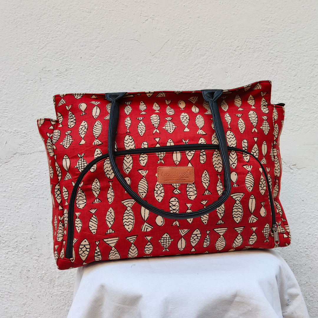 Versatile partition tote red with fish design