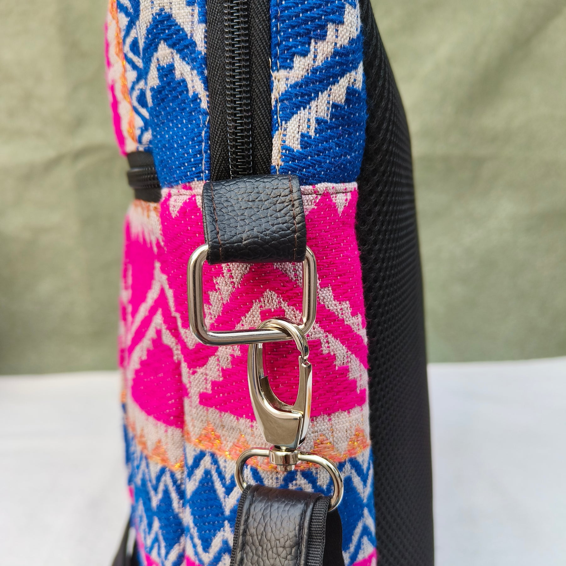 Lap sling cum backpack Pink with white zigzag print
