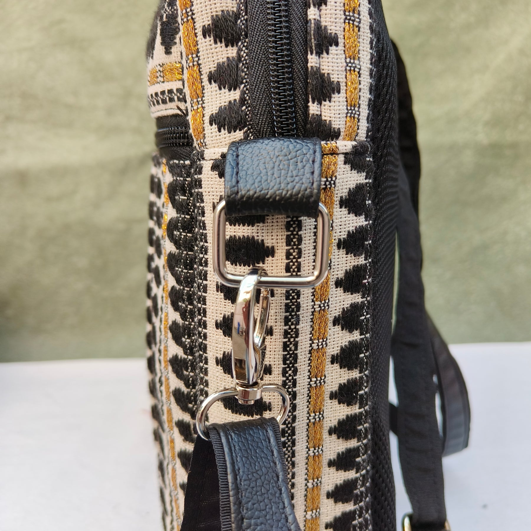 Lap sling cum backpack white with black oval print