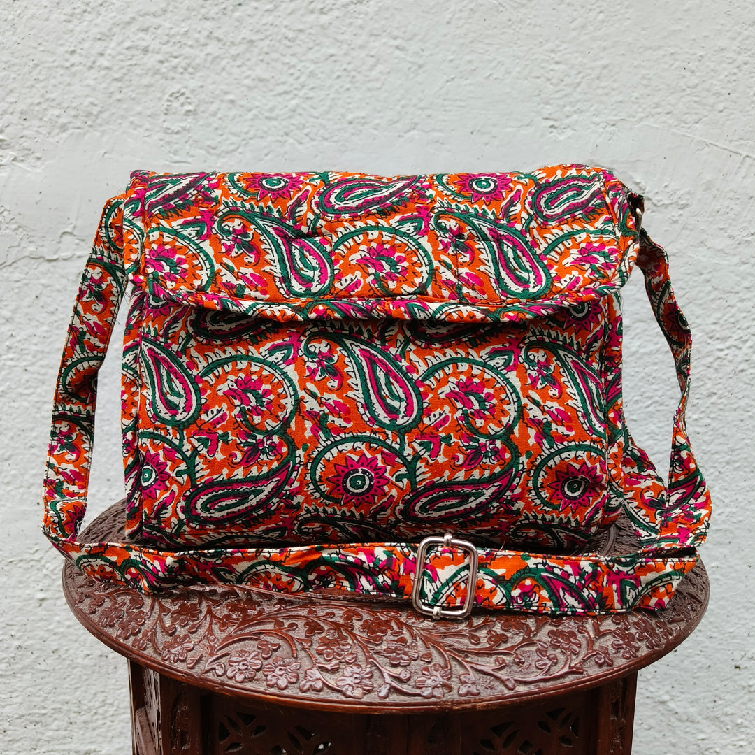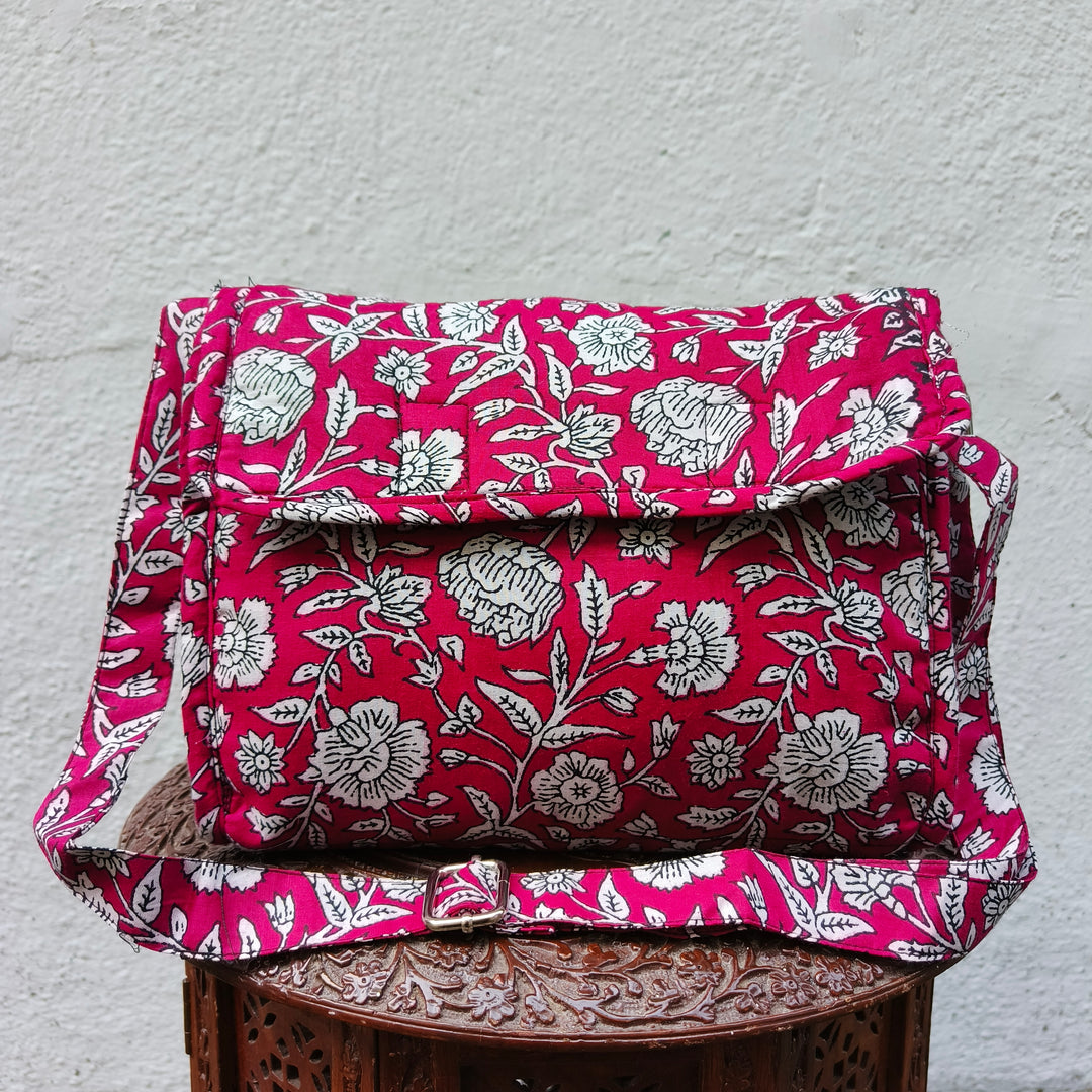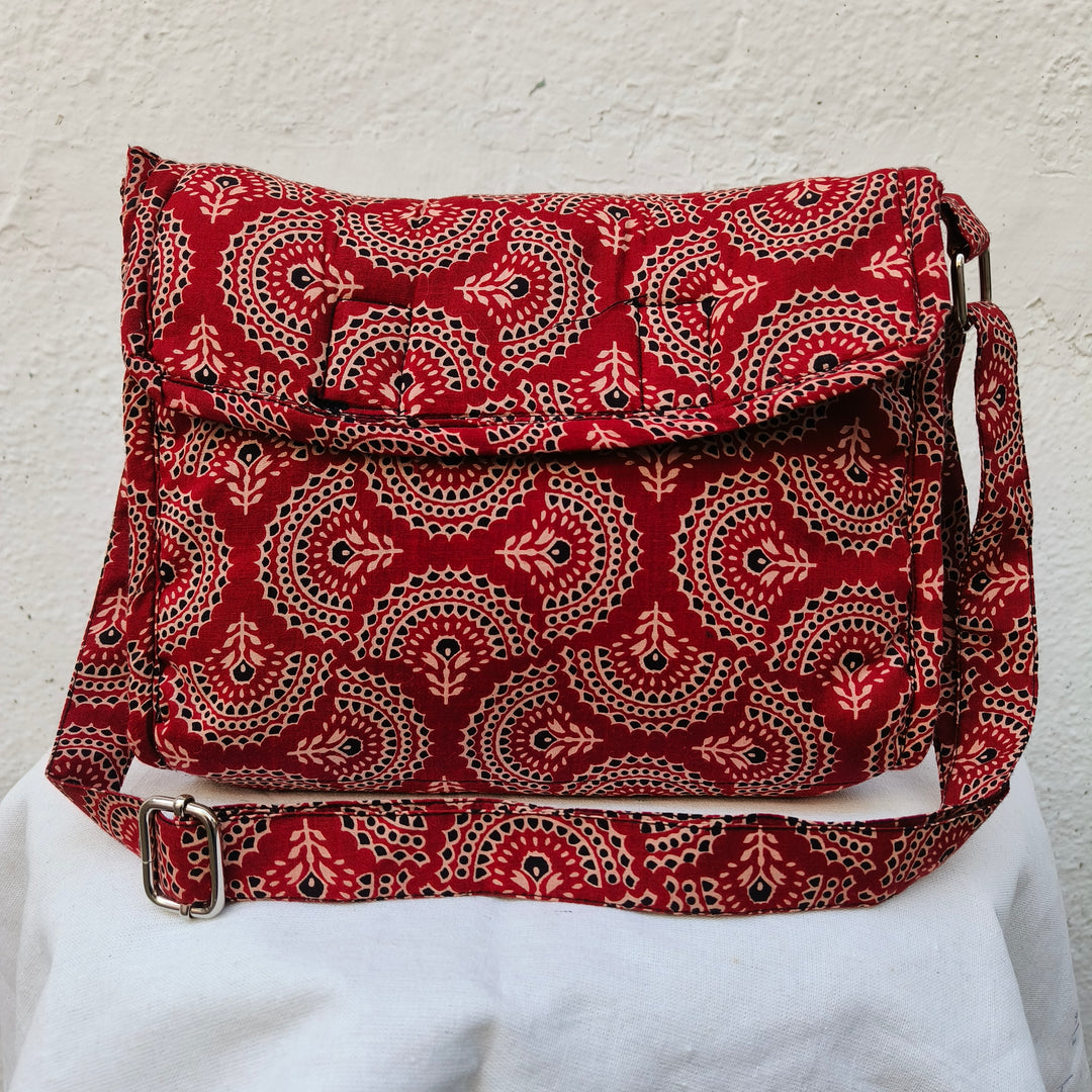 Multizipper Sling 4 Zips red with black jaipur print