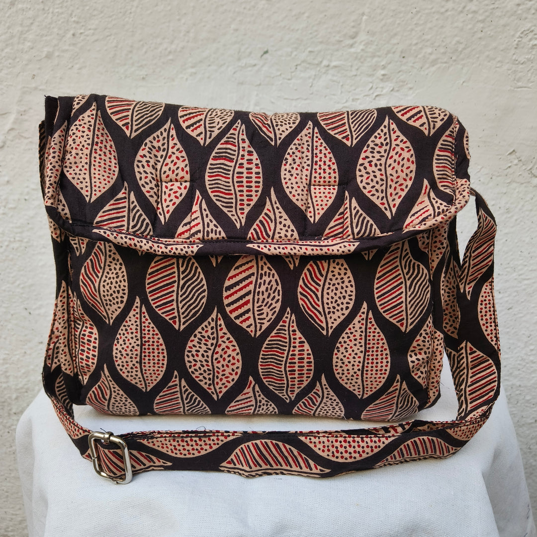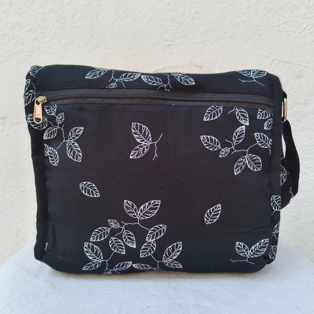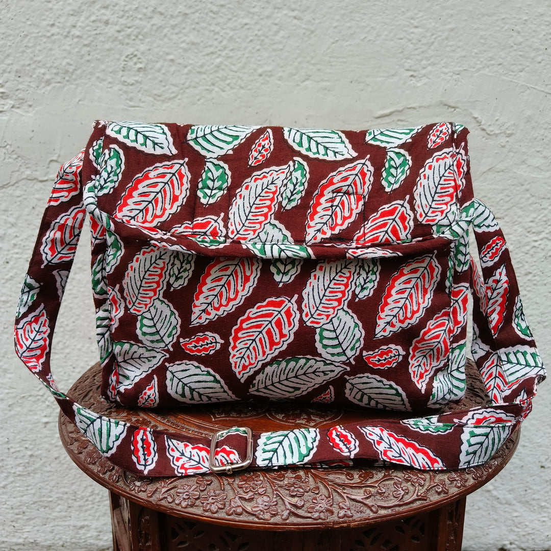 Multizipper Sling 4 Zips Maroon Colour With Small Leaf Design.
