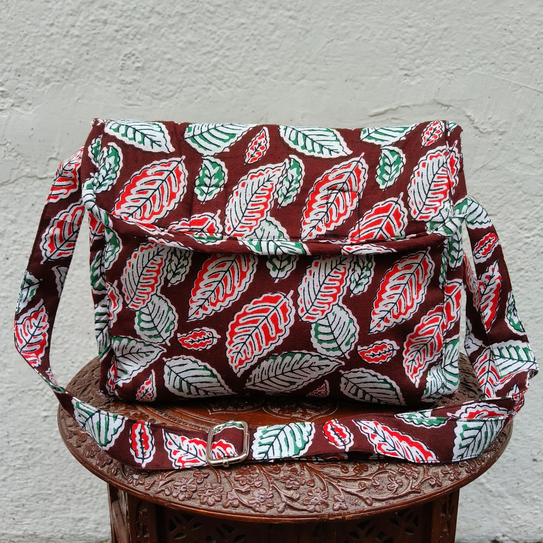 Multizipper Sling 4 Zips brown with leaf print