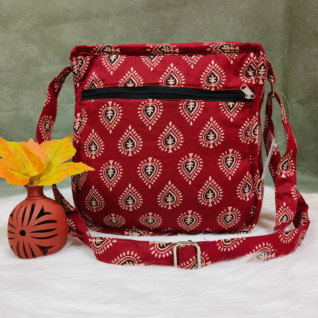 Xtra Sling bag Maroon with kundan print