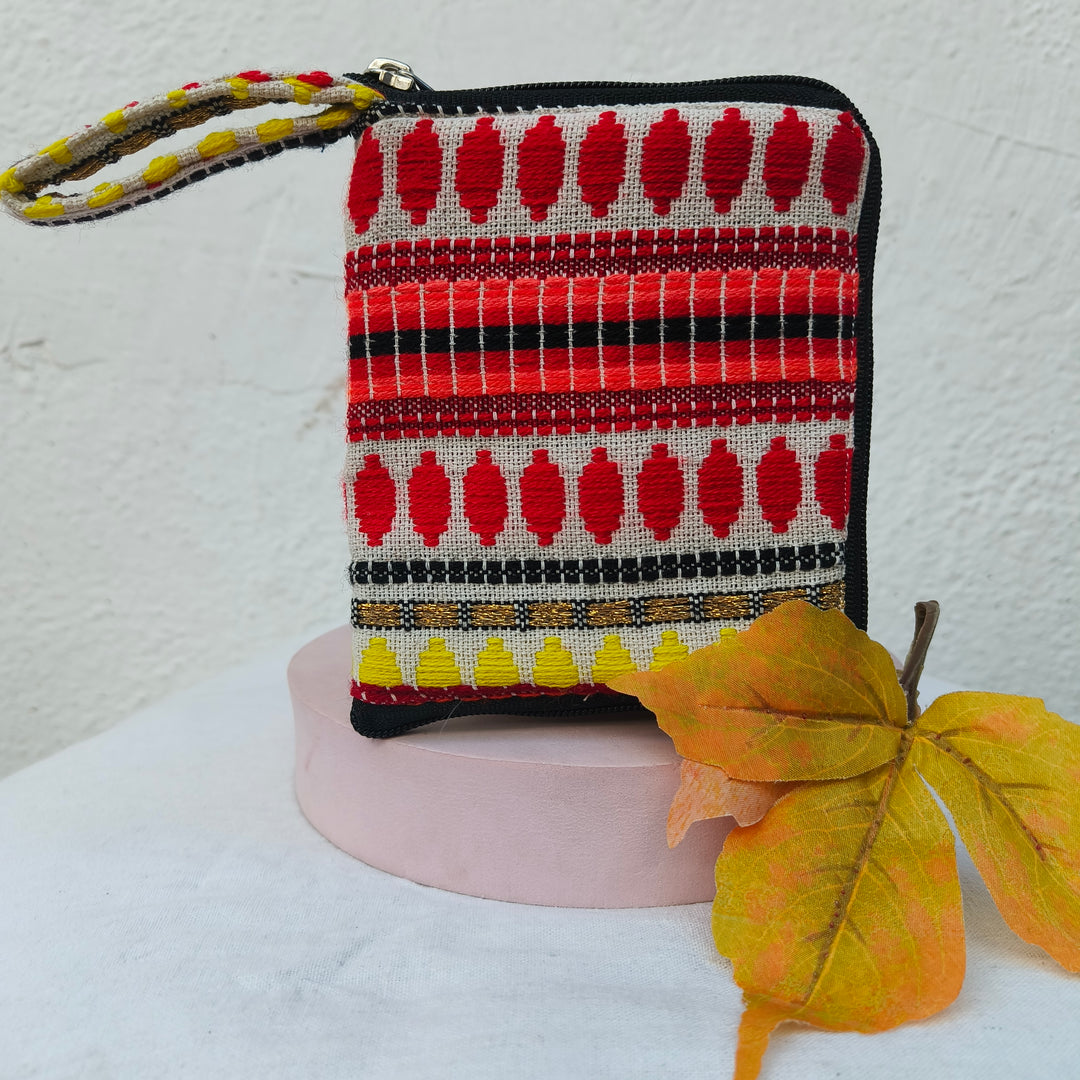 Ikat Clutch Black Colour Red and White Striae Prints.