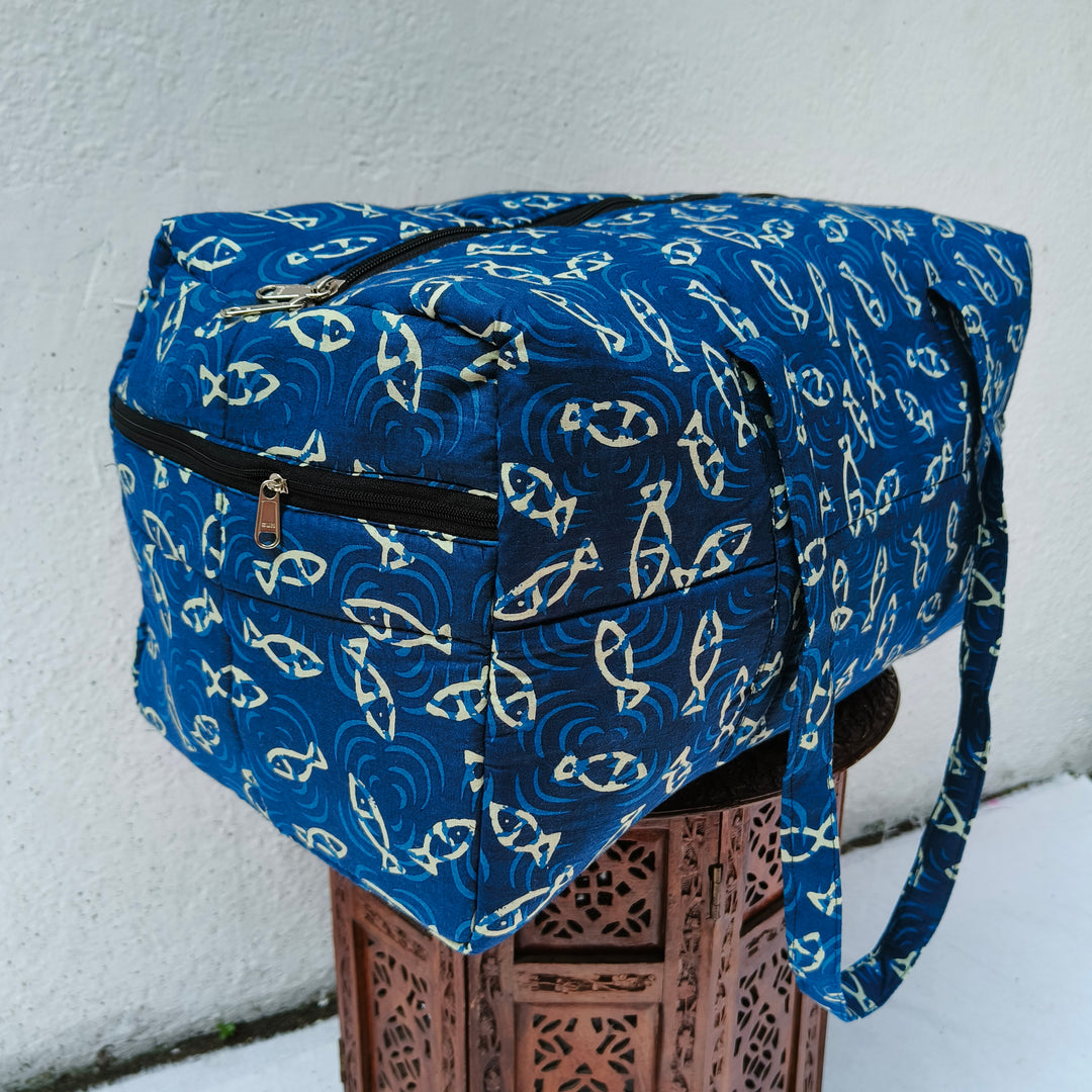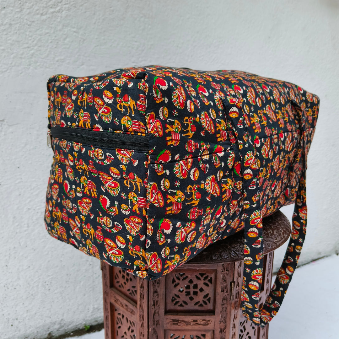 High utility, functionally divided and water Resistant Tote made out of Boho fabric and vegan leather.