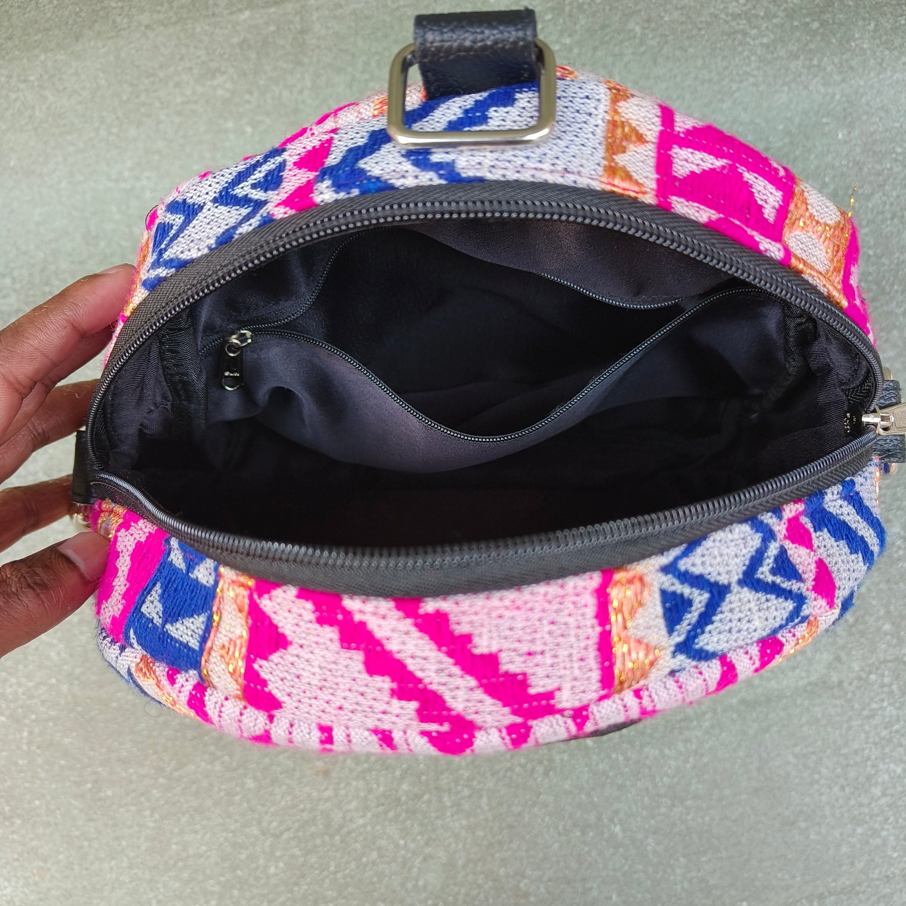 BACKSWINGS A Unique Backpack which can be converted into a Sling Bag. Isn't it amazing ? Made out of high quality vegan leather this product is one of its kind ! it has an adjustable strap and 2 main zips with one outer zip for convenience . Lakshya is an ISO certified Company 10*4.5*11